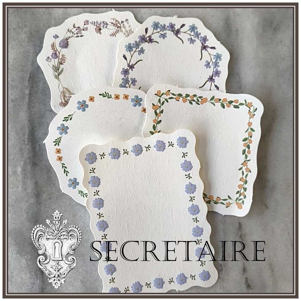 Floral frame notelets, set of 20. Pinks, purples